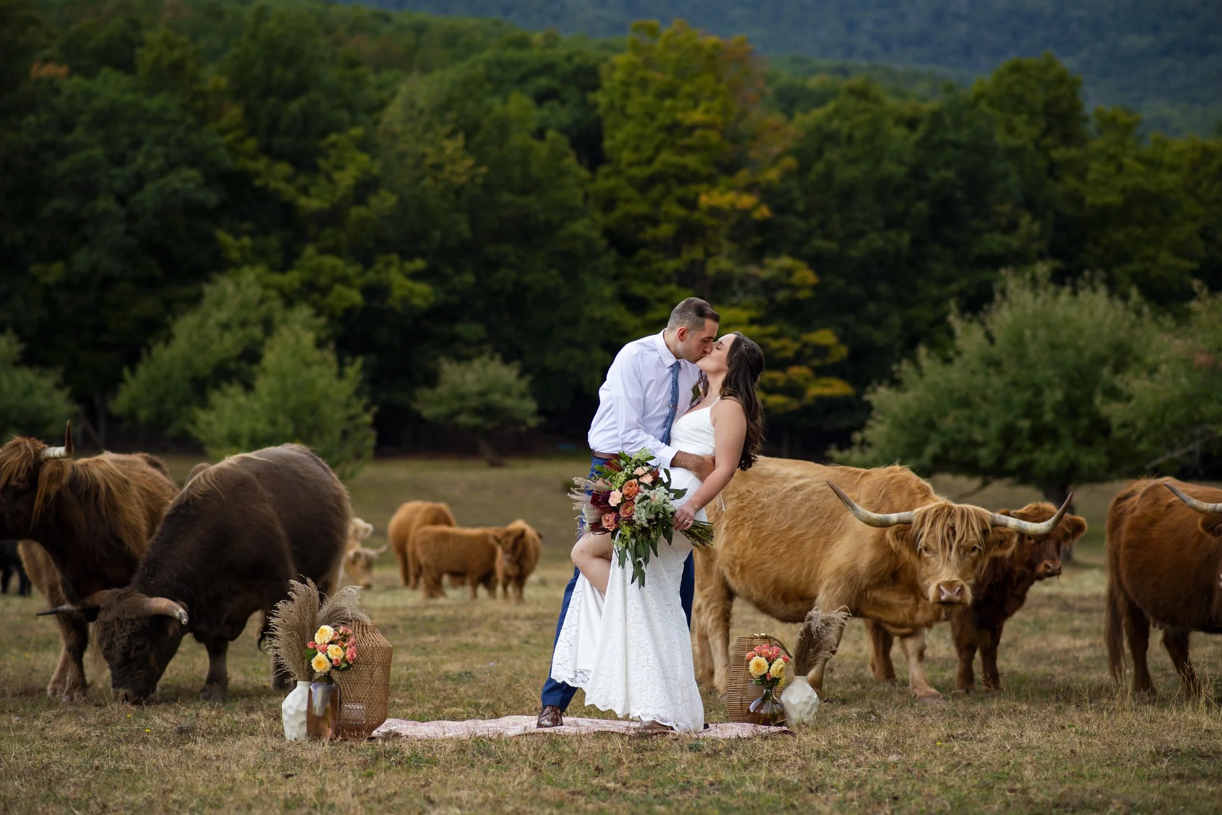 🐮 Resident Highland cows (including our fan-favorite, Forest) who add charm to your special day